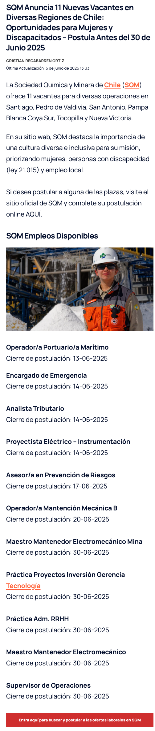 SQM da a conocer las vacantes disponibles en sus operaciones - (mch.cl)