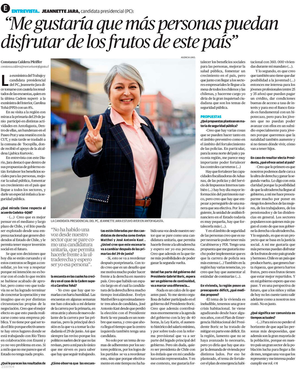 Jeannette Jara: "Me gustaría que más personas puedan disfrutar de los frutos de este país" - (El Mercurio de Antofagasta)