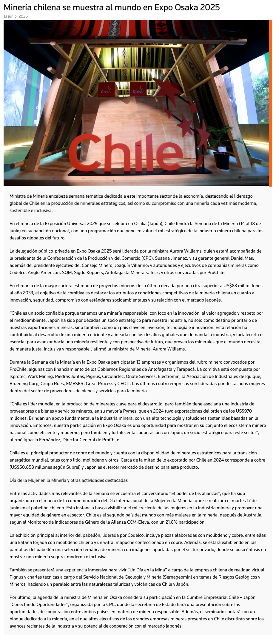 La industria minera chilena se muestra al mundo en Expo Osaka 2025 - (mch.cl)
