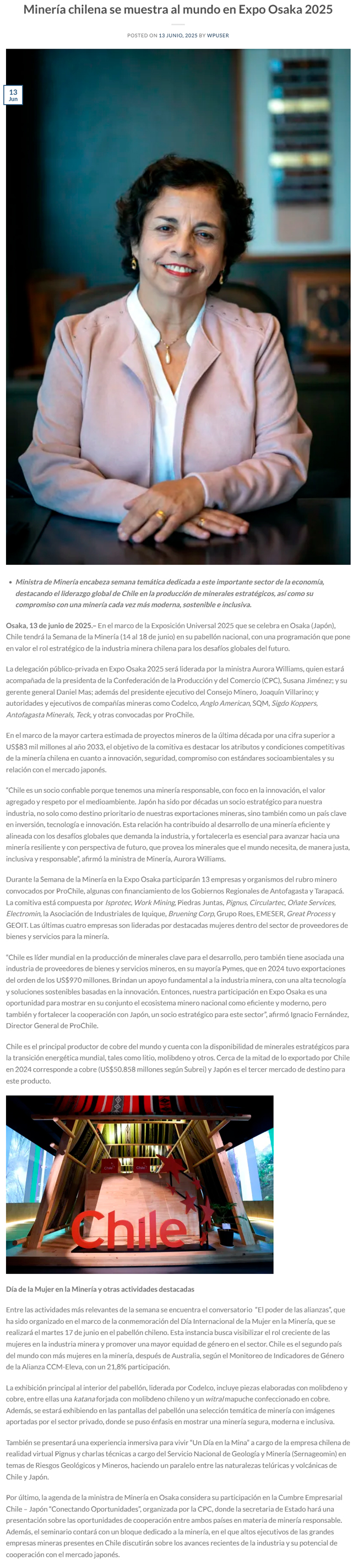 La industria minera chilena se muestra al mundo en Expo Osaka 2025 - (mch.cl)