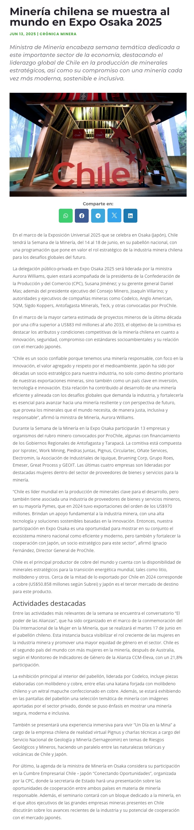 La industria minera chilena se muestra al mundo en Expo Osaka 2025 - (mch.cl)