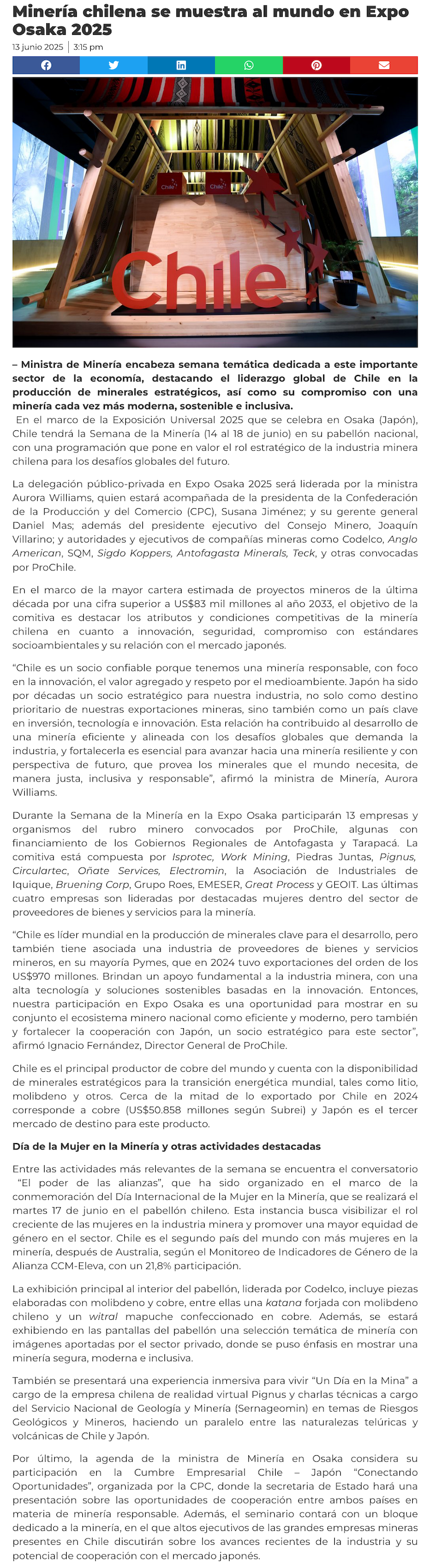 Minería chilena se muestra al mundo en Expo Osaka 2025 - (mvcomunicaciones.cl)
