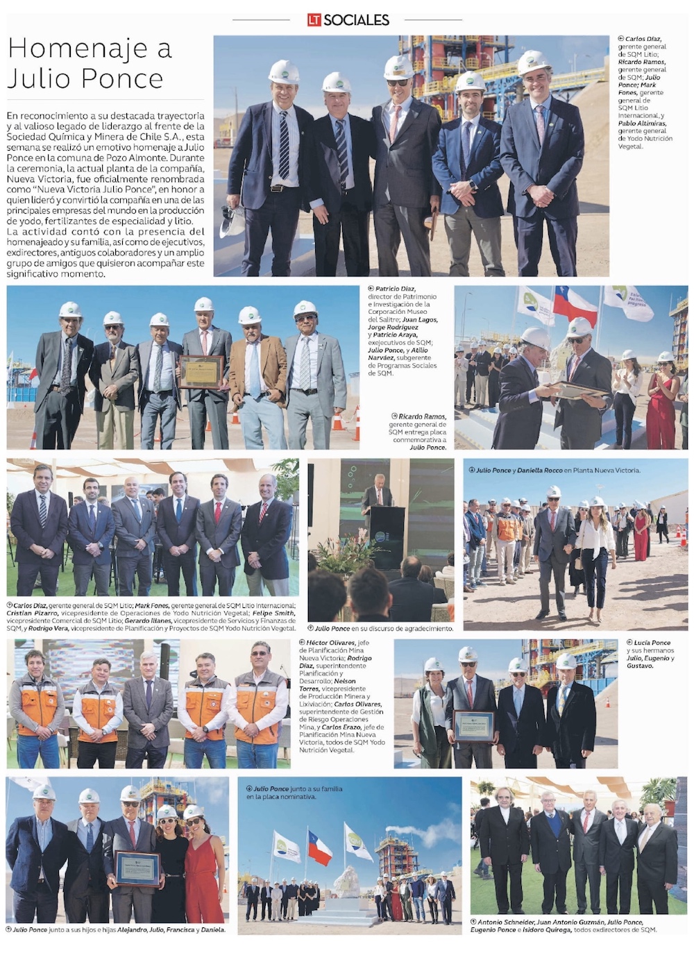 Se realizó homenaje a Julio Ponce en planta Nueva Victoria - (El Mercurio de Santiago)