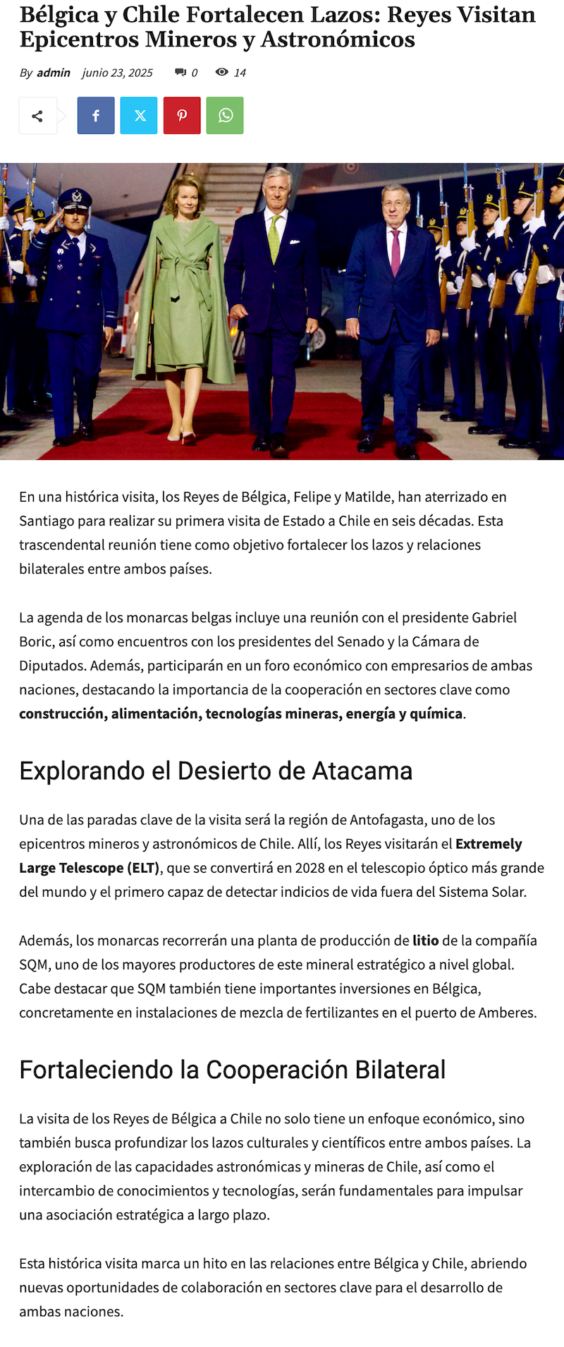 Bélgica y Chile Fortalecen Lazos: Reyes Visitan Epicentros Mineros y Astronómicos - (reportediario.cl)