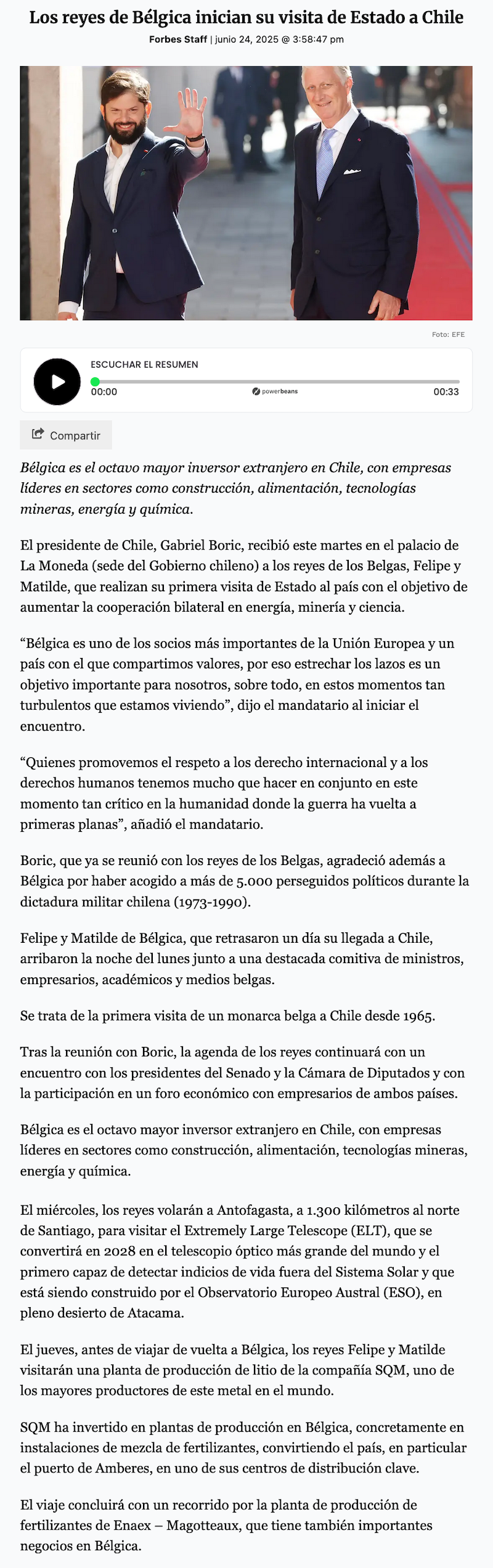 Reyes de Bélgica llegan a Chile para realizar una visita centrada en litio y astronomía - (24horas.cl)