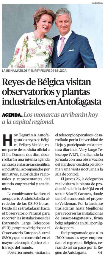 Reyes de Bélgica llegan a Chile para realizar una visita centrada en litio y astronomía - (24horas.cl)