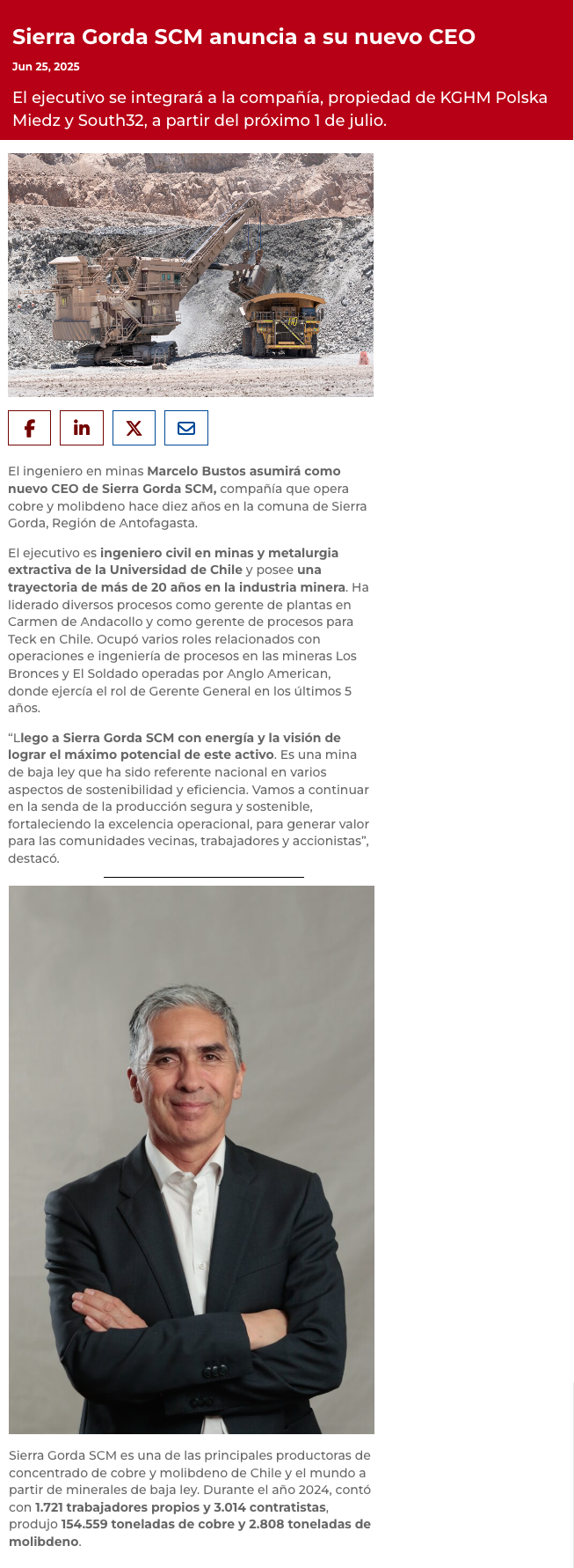 Asume nuevo director ejecutivo de la minera Sierra Gorda SCM - (El Mercurio de Antofagasta)