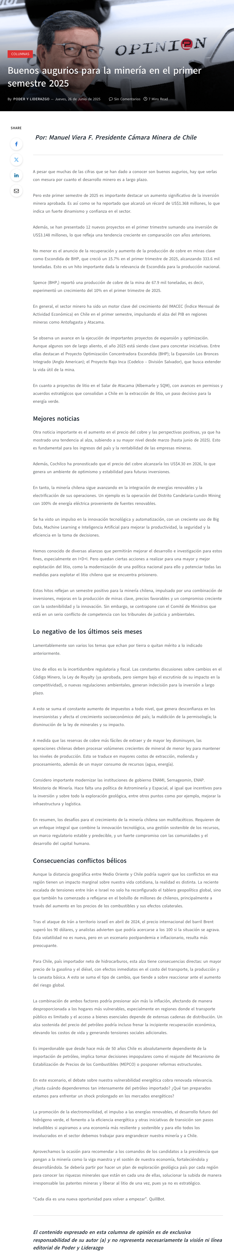 Buenos augurios para la minería en el primer semestre 2025 - (mvcomunicaciones.cl)