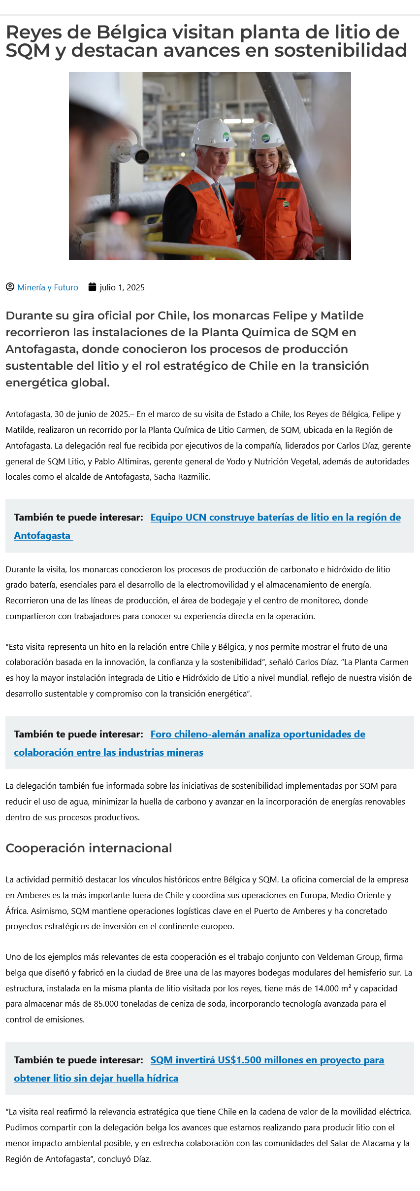 Visita real en Antofagasta: Reyes belgas recorrieron Planta Química de SQM para conocer procesos de producción sustentables - (eldesconcierto)