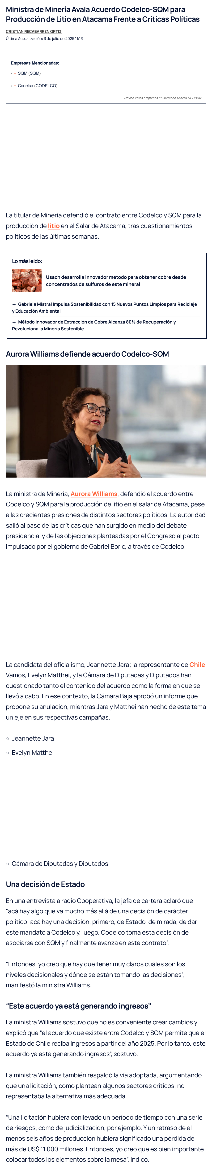 Acuerdo Codelco-SQM defendido ante críticas políticas – Ministra Williams responde - (redimin)