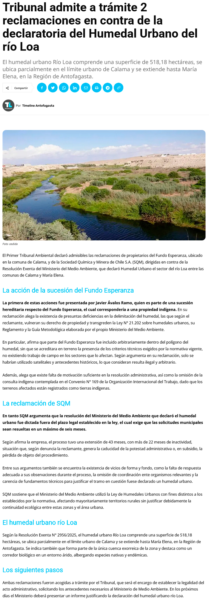 Se admiten a trámite dos reclamaciones en contra de la declaratoria del Humedal Urbano del río Loa - (calamaenlinea.cl)