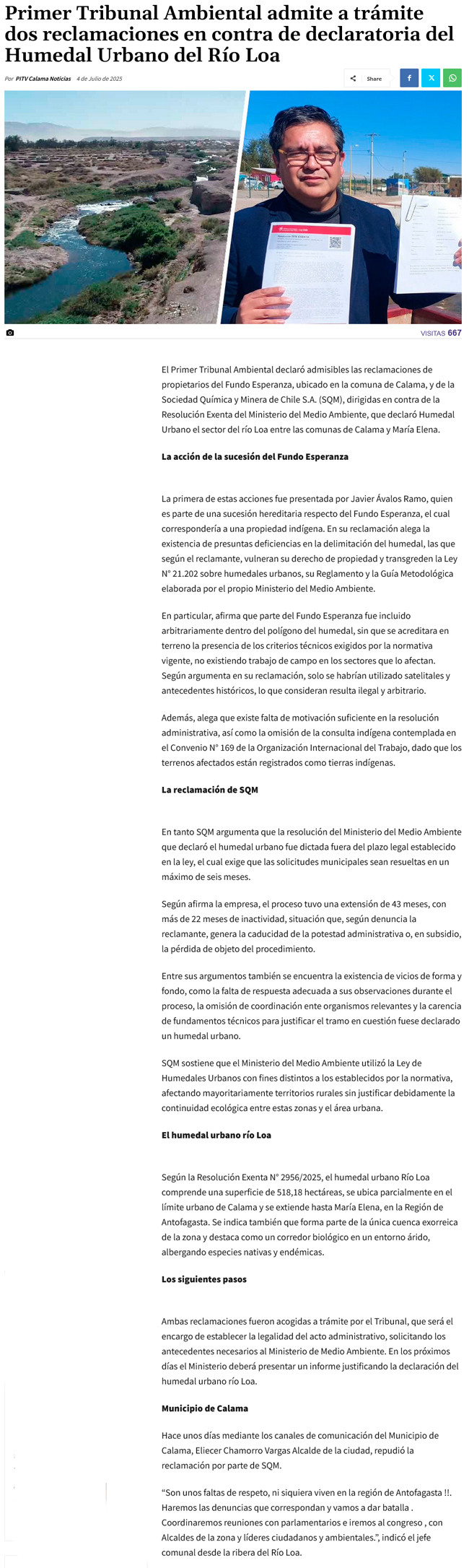 Se admiten a trámite dos reclamaciones en contra de la declaratoria del Humedal Urbano del río Loa - (calamaenlinea.cl)