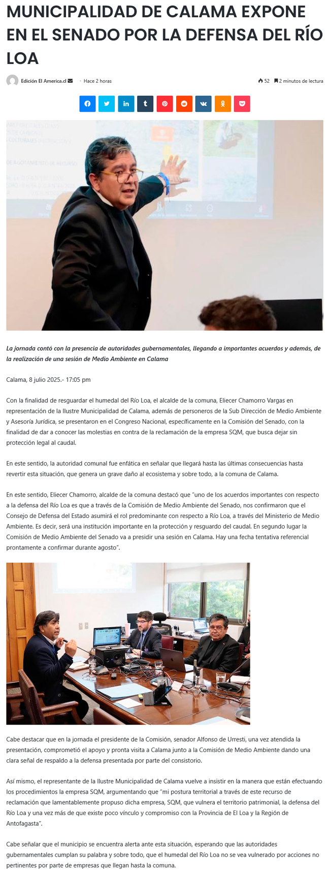 Municipalidad de Calama expone en el senado por la defensa del Río Loa - (desiertofm.cl)