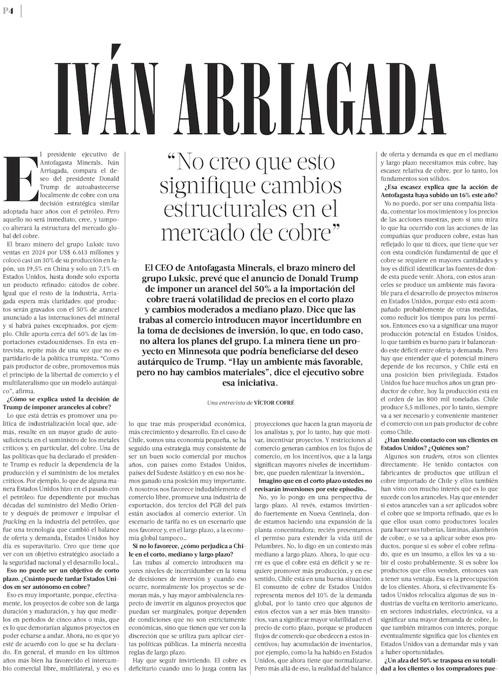 Pese al temor arancelario por Trump, Chile eleva su producción de cobre - (El Mercurio de Santiago)