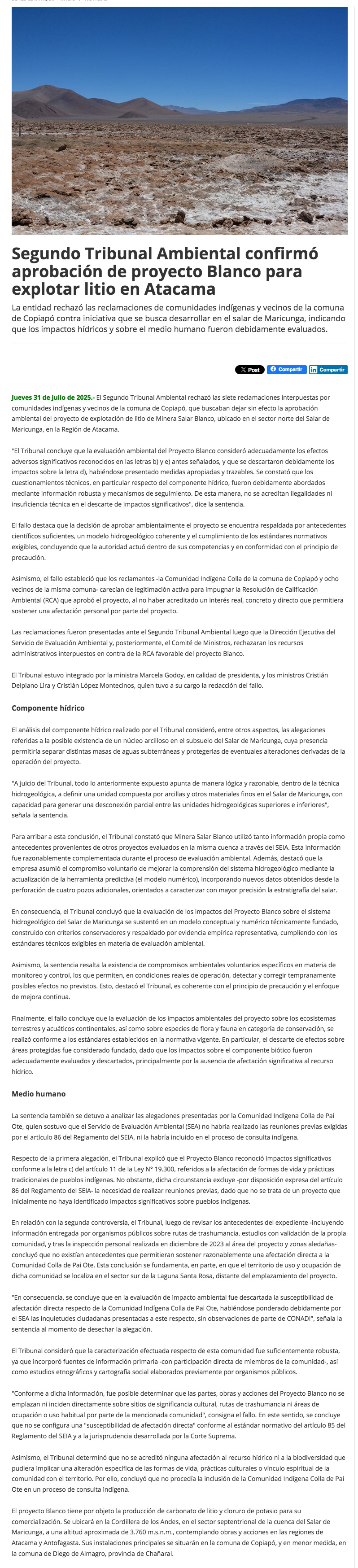 Segundo Tribunal Ambiental confirma aprobación de Minera Salar Blanco - (El Diario de Atacama)