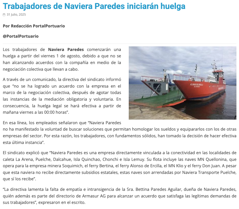 Chiloé: inquieta huelga de trabajadores de naviera - (La Estrella de Chiloé)