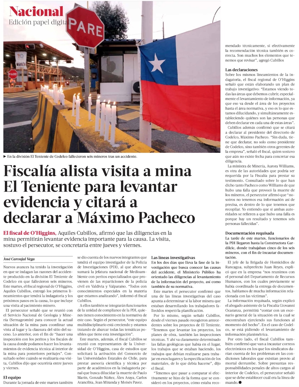 Teniente: fiscal Cubillos confirma que citarán a Pacheco y Alvarado por derrumbe - (La Segunda)