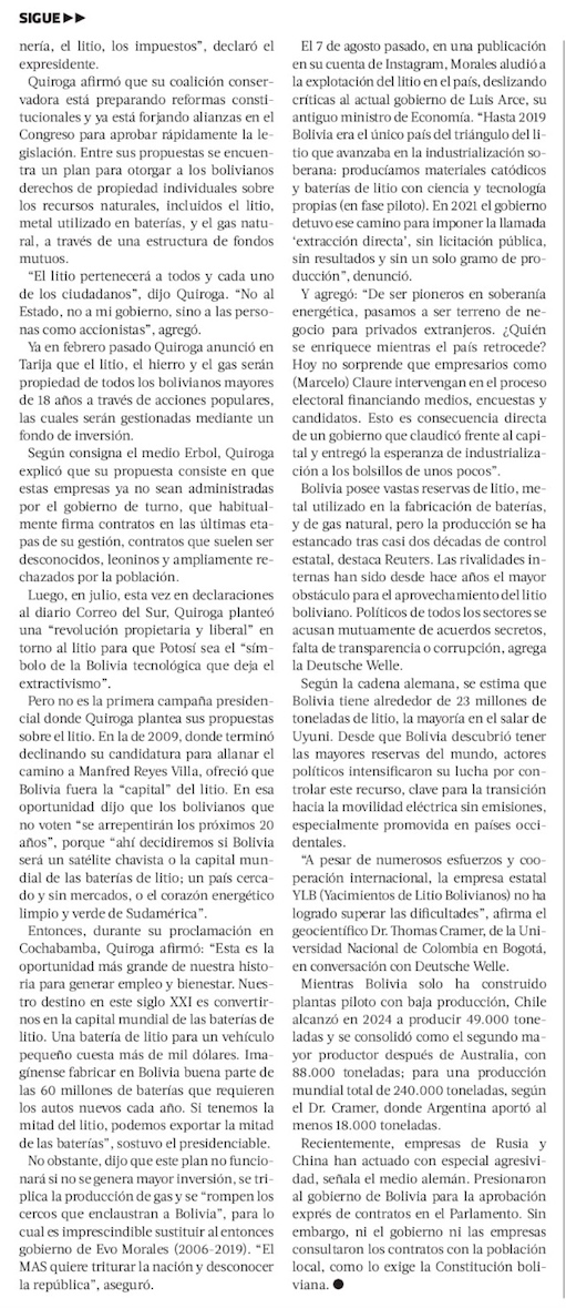 Quiroga planteará a Milei y Chile coordinar plan sobre el litio - (El Mercurio de Santiago)