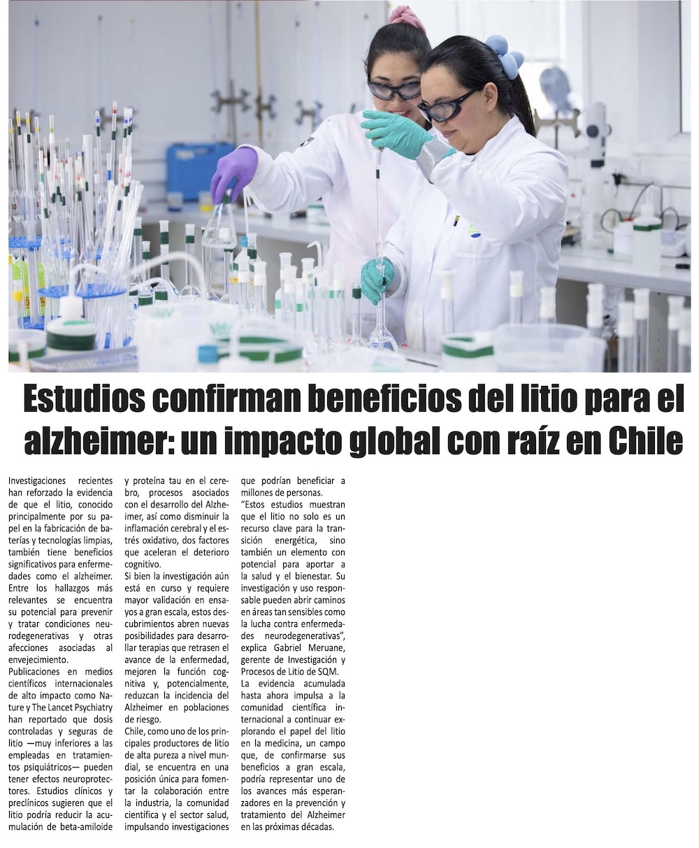 Estudios confirman beneficios del litio para el alzheimer: Un impacto global con raíz en Chile - (madero.cl)