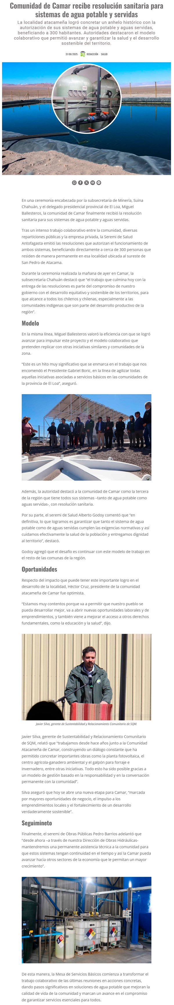 Localidad de Camar ya cuenta con la autorización para el sistema de agua potable y aguas servidas - (antofagastaonline.cl)