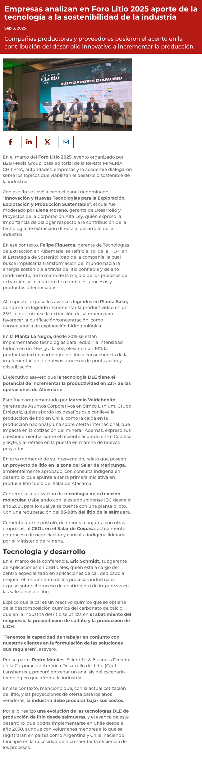 Foro Litio 2025: La industria avanza en su desarrollo sostenible - (mch.cl)