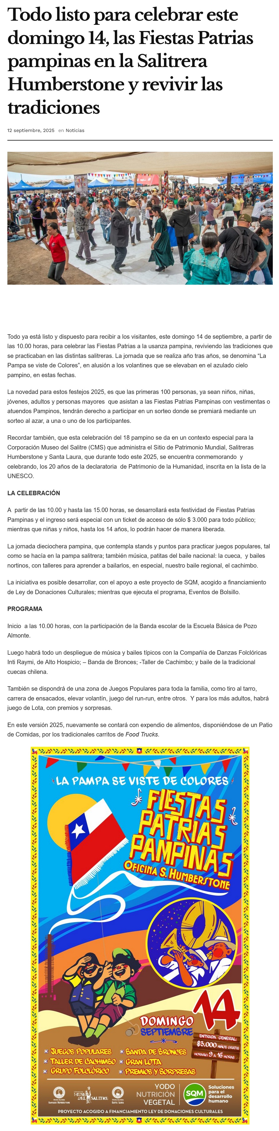 A la usanza pampina, agrupaciones y visitantes celebrarán las Fiestas Patrias en la Salitrera Humberstone - (edicioncero)