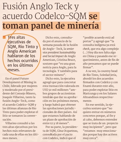 Fusión Anglo Teck y acuerdo Codelco-SQM se toman panel de minería de Chile Day - (DF Online)