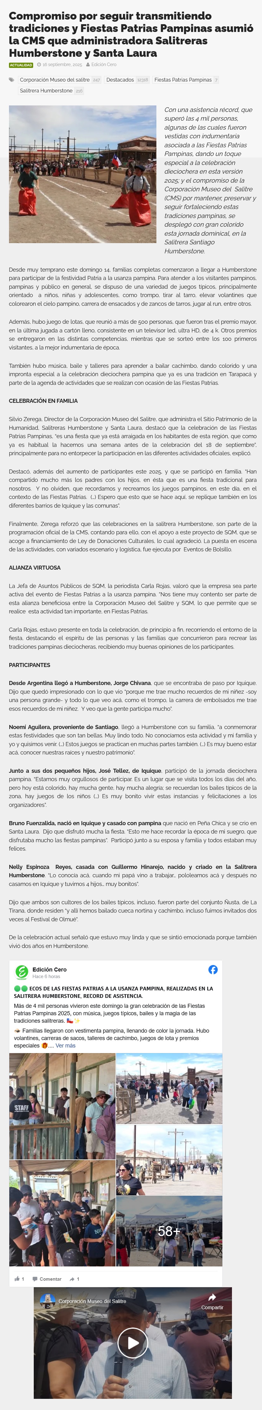 Masiva concurrencia familiar, juegos típicos, música y bailes nortinos, en celebración del “18 Pampino” en salitrera Humberstone - (El Longino de Iquique)