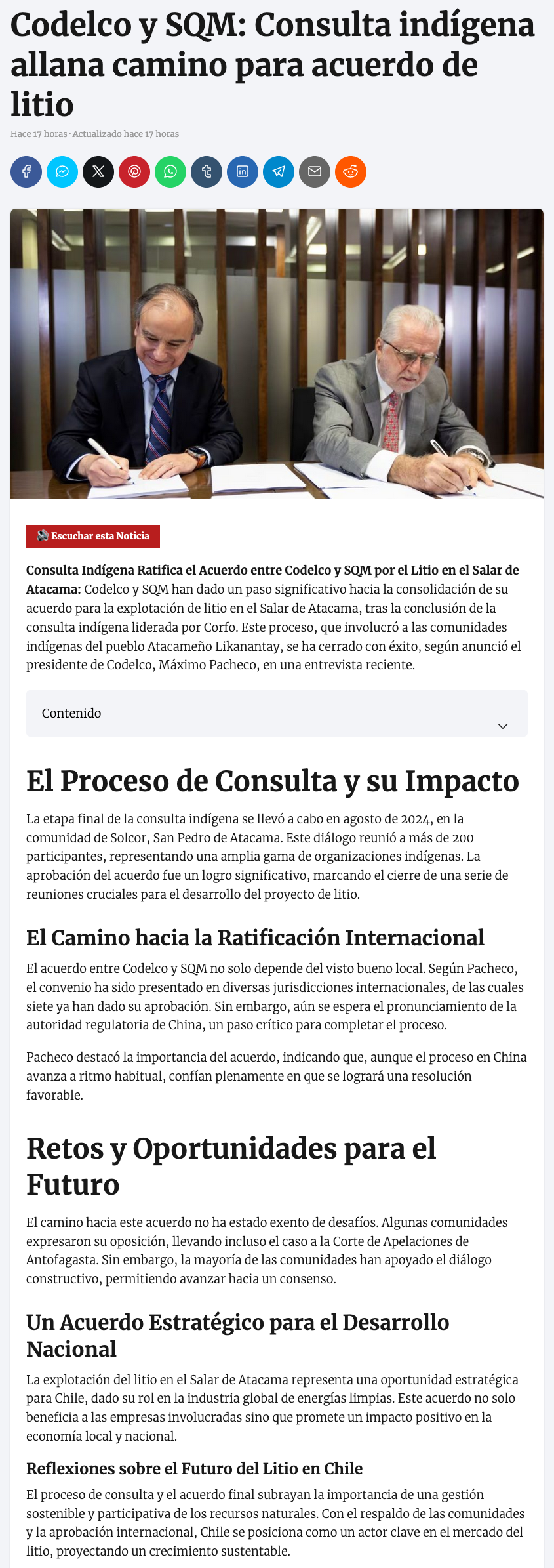 Acuerdo Codelco-SQM recibe luz verde de consulta indígena en Atacama: solo falta pronunciamiento de China - (soyantofagasta)