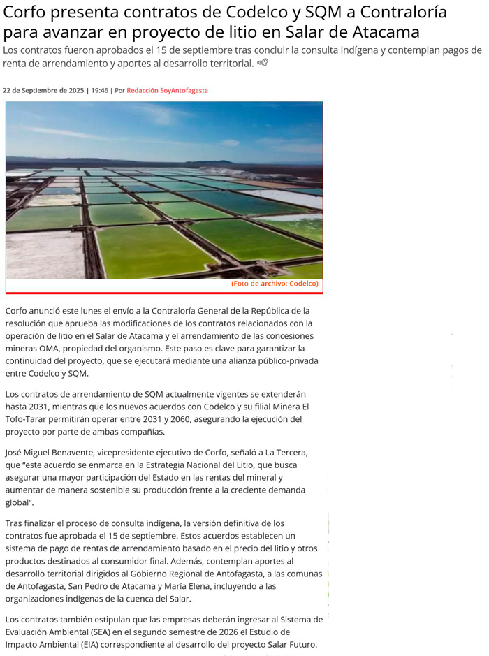 Corfo formaliza extensión de contratos de litio en el Salar de Atacama con SQM y Codelco - (mineriayfuturo.cl)