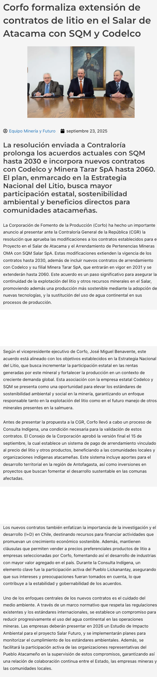 Corfo envía a Contraloría acuerdo clave de litio en Atacama - (norteonline.cl)