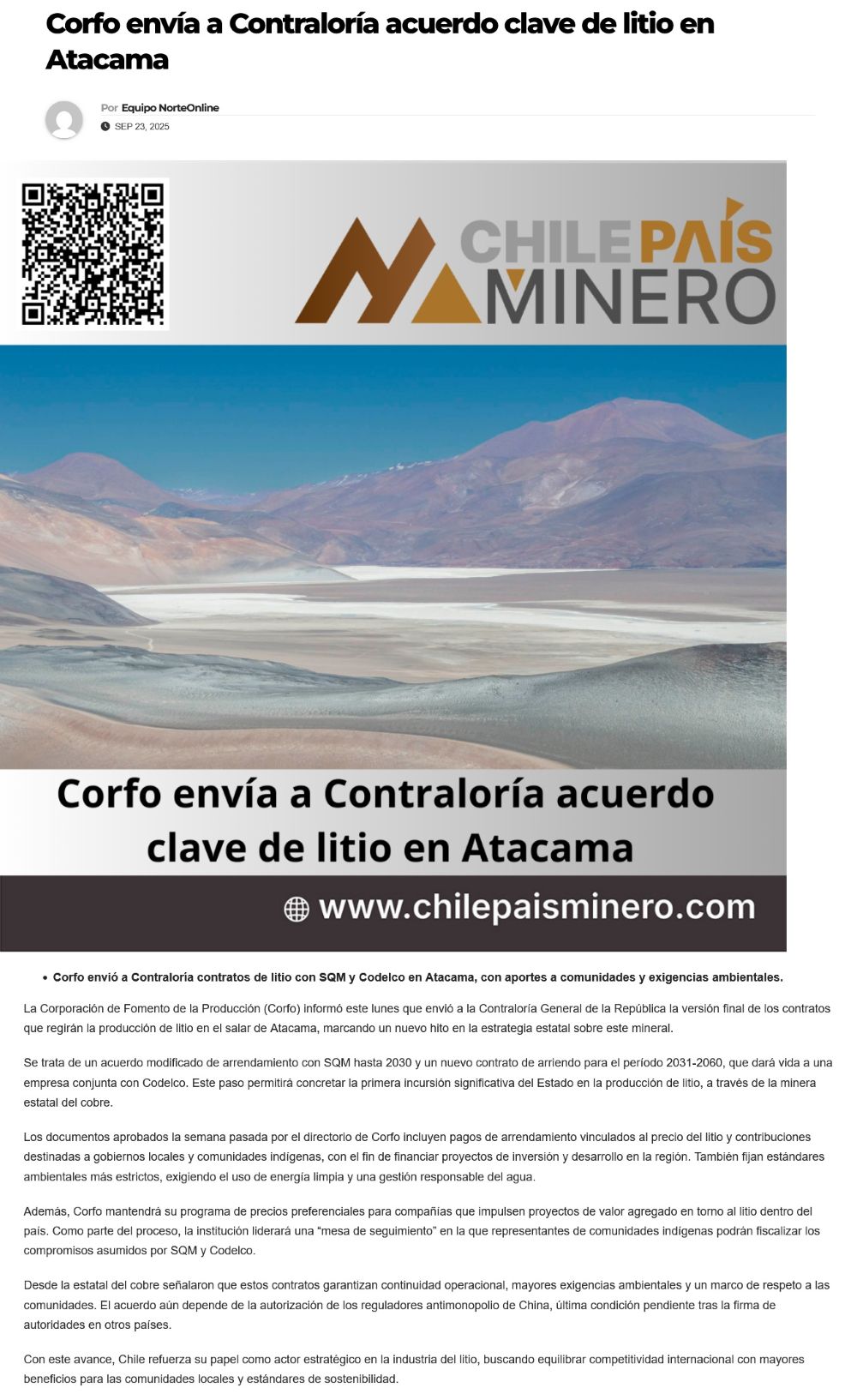 Corfo formaliza extensión de contratos de litio en el Salar de Atacama con SQM y Codelco - (mineriayfuturo.cl)