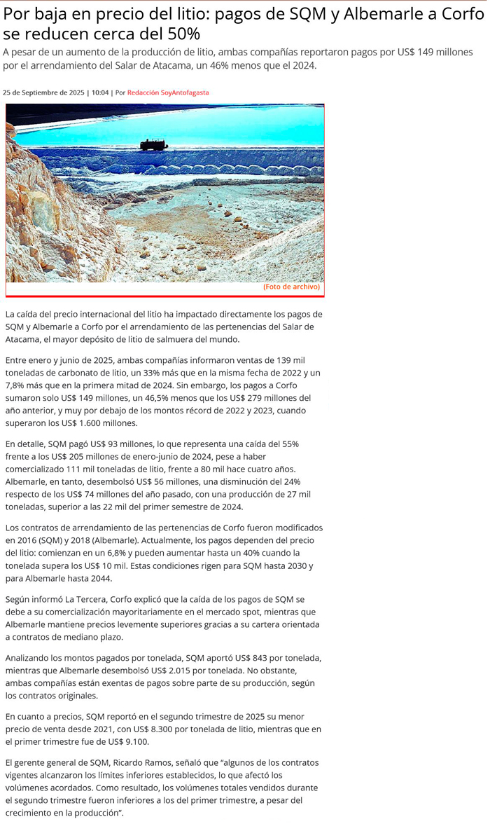 SQM y Albemarle reducen a la mitad sus aportes a Corfo pese a récord de producción - (eldiariodesantiago.cl)
