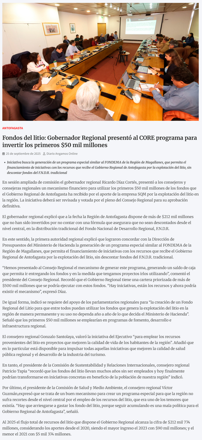 Fondos del litio: Gobernador Regional presentó al CORE programa para invertir los primeros $50 mil millones - (radioua.cl)