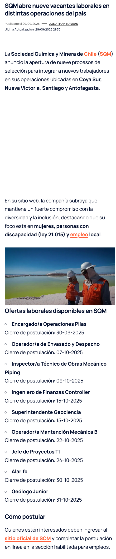 SQM da a conocer las vacantes disponibles en sus operaciones - (mch.cl)