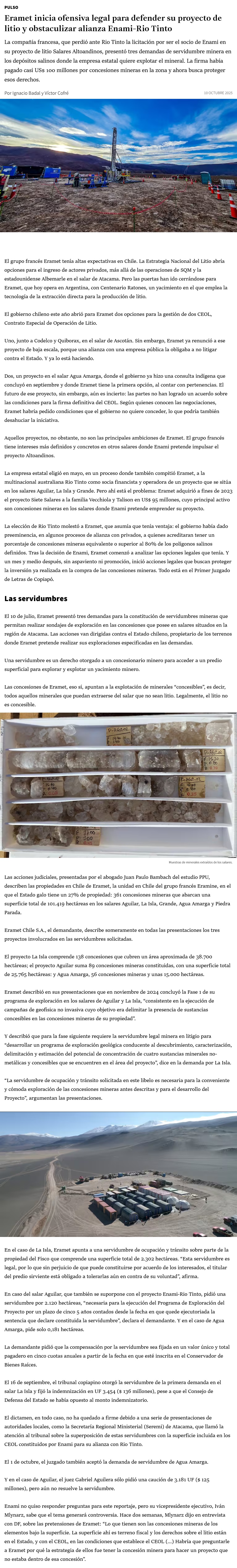 Eramet inicia ofensiva legal para proteger sus derechos mineros y frenar la alianza Enami–Rio Tinto - (redimin)