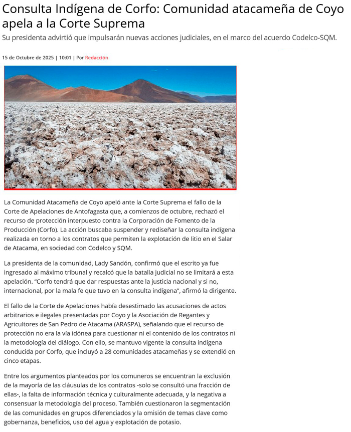Comunidad Atacameña de Coyo acusa mala fe de Corfo y eleva conflicto del litio a la Corte Suprema - (elreferente.cl)