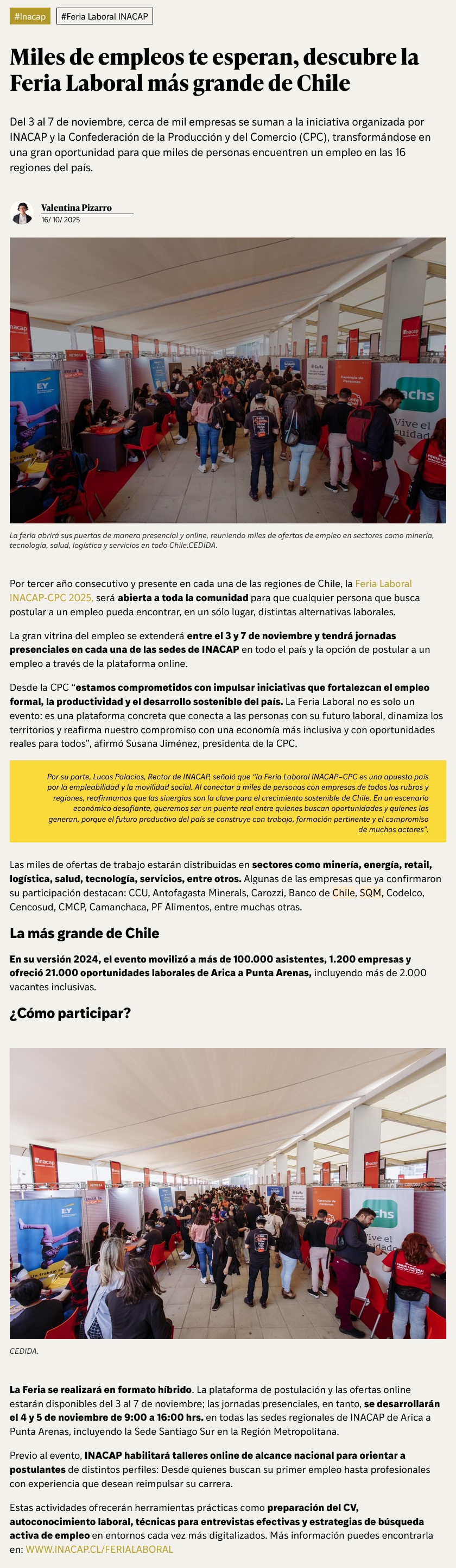 Feria Laboral INACAP-CPC 2025: fechas, empresas participantes y cómo postular - (centralnoticia.cl)