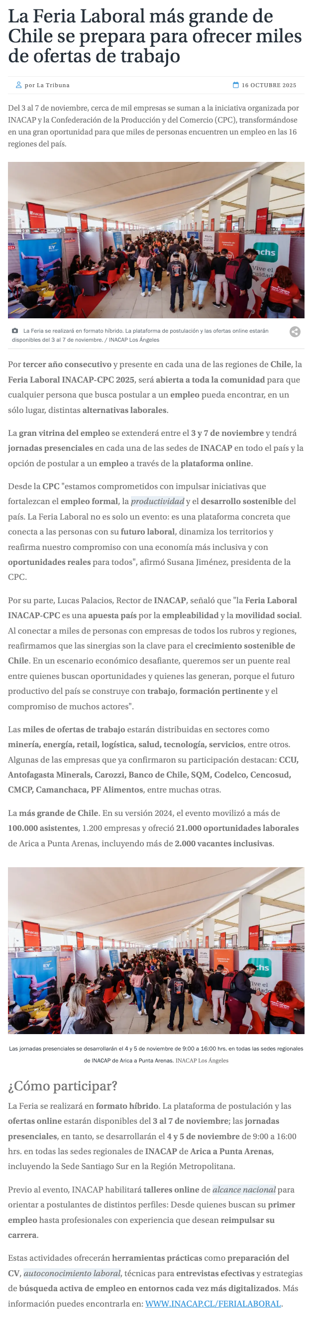 Feria Laboral INACAP-CPC 2025: fechas, empresas participantes y cómo postular - (centralnoticia.cl)