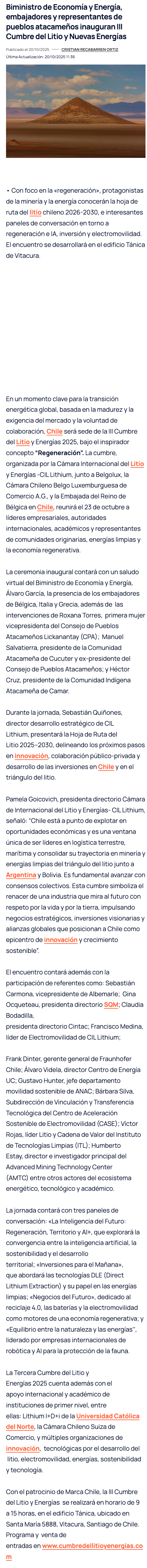 Biministro Álvaro García y líderes internacionales inauguran la III Cumbre del Litio y Nuevas Energías en Santiago - (mineriayfuturo.cl)