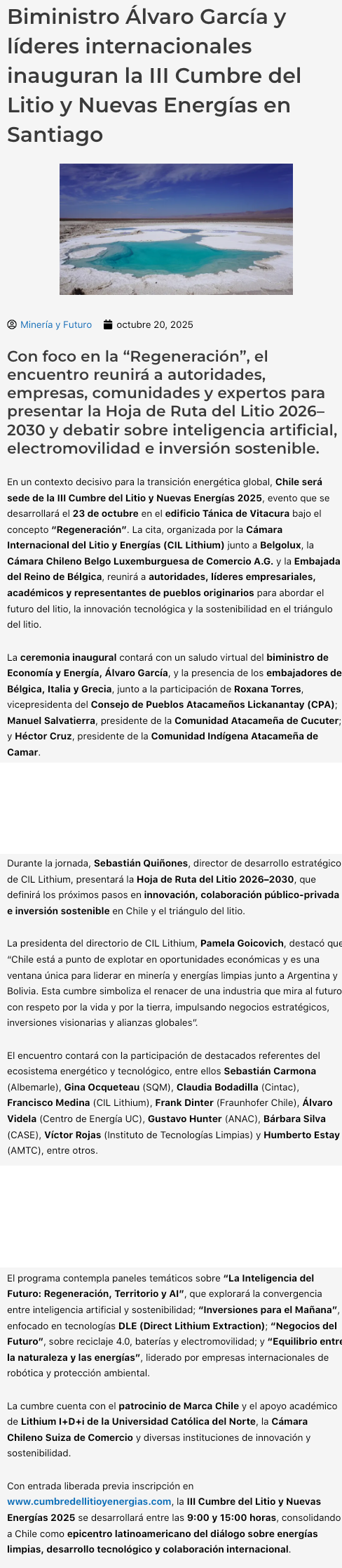 Biministro de Economía y Energía, embajadores y representantes de pueblos atacameños inauguran III Cumbre del Litio y Nuevas Energías - (portalinnova.cl)