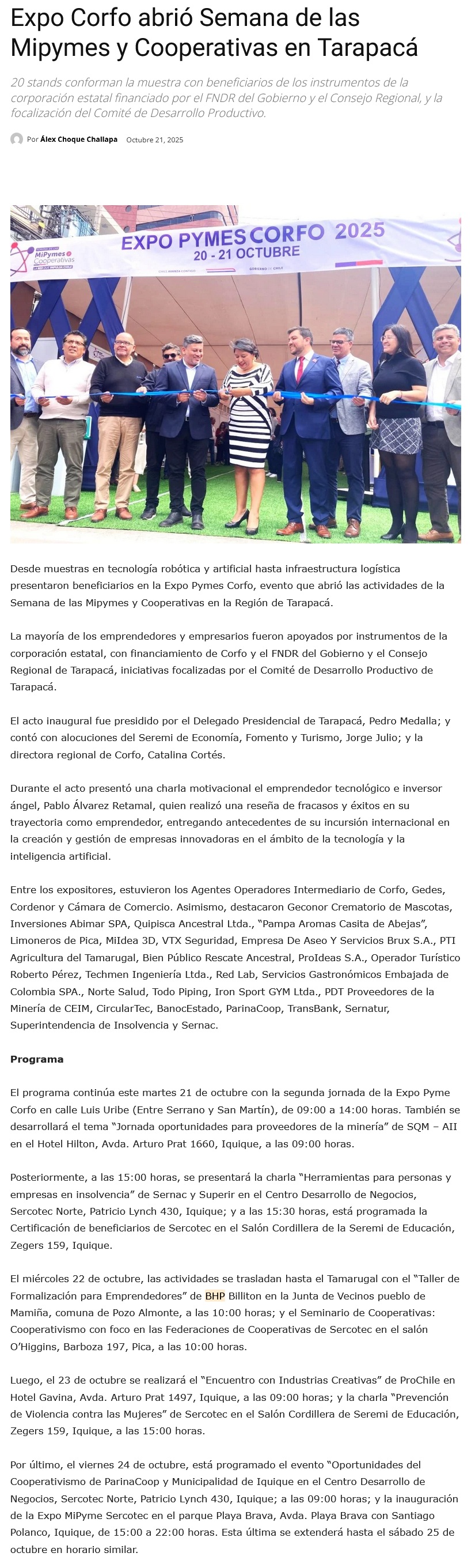 Expo Corfo abrió Semana de las Mipymes y Cooperativas en Tarapacá - (El Longino de Iquique)