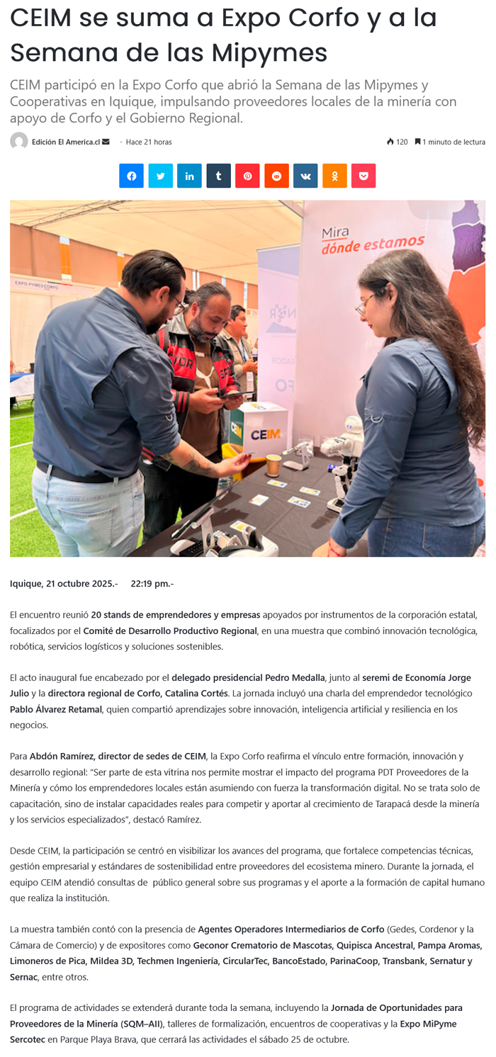 CEIM se suma a Expo Corfo y a la Semana de las Mipymes - (norteonline.cl)