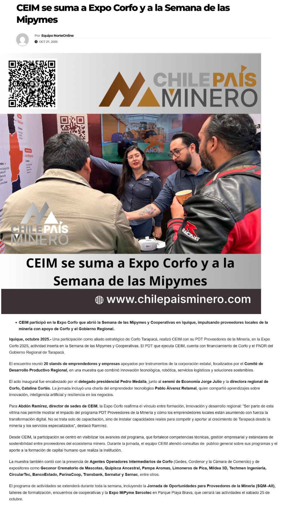 CEIM se suma a Expo Corfo y a la Semana de las Mipymes - (reporteminero)