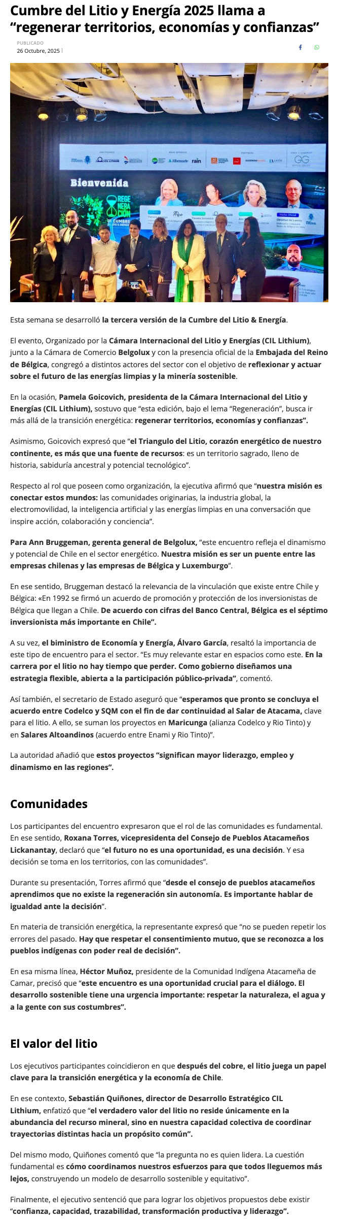 Cumbre del Litio y Energía 2025 llama a “regenerar territorios, economías y confianzas” - (mch.cl)