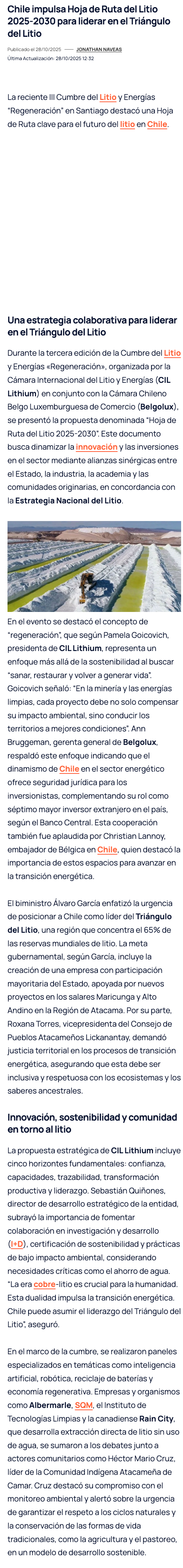 Cámara Internacional del Litio y Energías presentó Hoja de Ruta al 2030 con énfasis en la colaboración y la flexibilidad normativa - (portalinnova.cl)