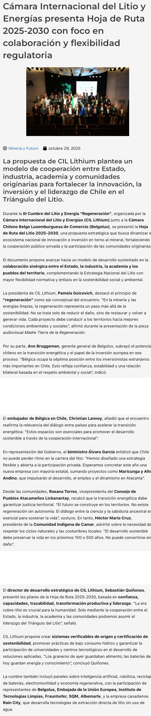 En la III Cumbre del Litio & Energías 2025 Cámara Internacional del Litio y Energías presentó Hoja de Ruta al 2030 con énfasis en la colaboración y la flexibilidad normativa - (mvcomunicaciones.cl)