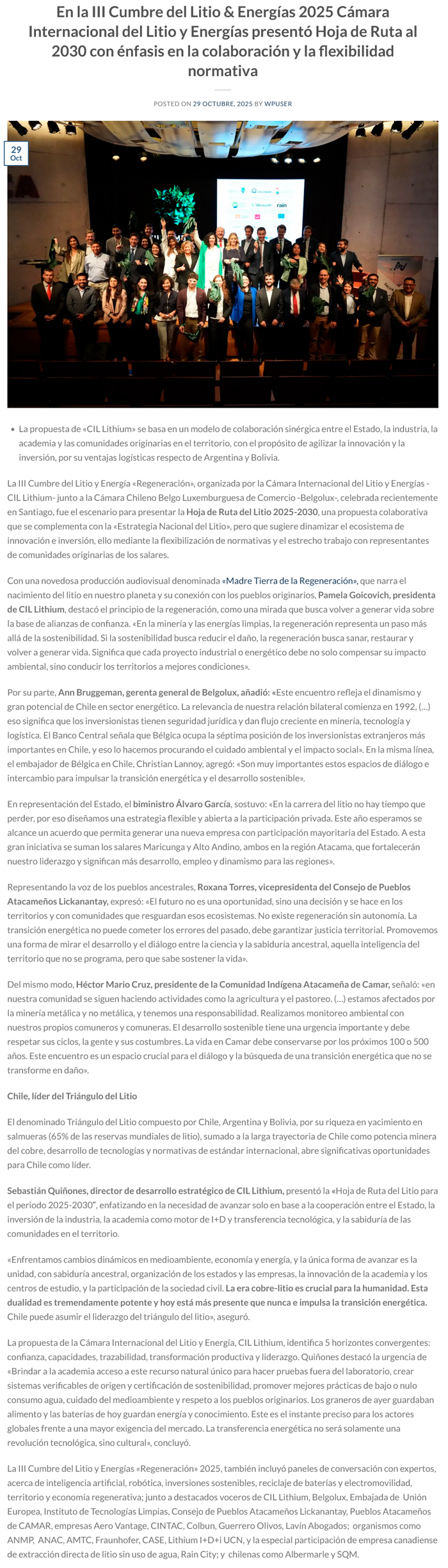 Cámara Internacional del Litio y Energías presenta Hoja de Ruta 2025-2030 con foco en colaboración y flexibilidad regulatoria - (mineriayfuturo.cl)