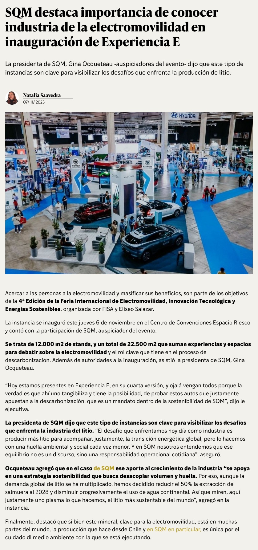 Arranca la cuarta versión de Experiencia E: ministra de Minería resaltó el llamado de Chile a liderar la sostenibilidad a nivel mundial - (regionesnoticias.cl)