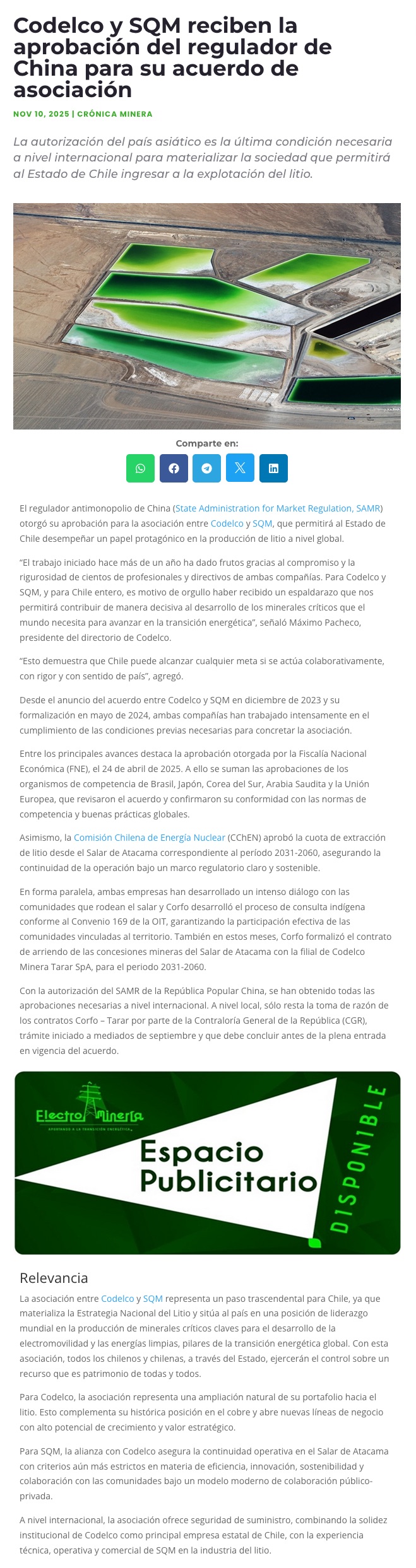 electromineria.cl - Lunes, 10 de Noviembre de 2025